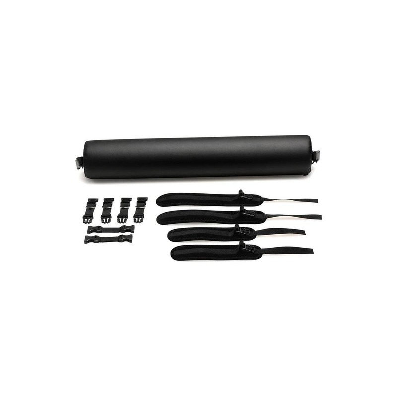 Open up your kinky play by spreading arms or legs with this padded, spreader bar. A little elevation from this cushion keeps your partner comfortable while they’re restrained with the built in ankle or wrist cuffs and clips! This lightweight, high-density foam cushion is covered in a luxurious vegan-friendly, faux leather with soft wrist and ankle cuffs. Set includes 2 wrist cuffs, 2 ankle cuffs, 4 connectors with D-rings and 2 restraint connectors. This foam bar keeps its shape and supports your body weight without letting you sink through the pillow. The ergonomic material and shape is designed to support your body while in bondage for added comfort! Place it under knees, ankles, back or neck while ankles or wrists are bound to each end of the bar.