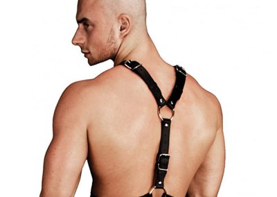 With a big O-ring in the middle of the chest area, set in strong black bonded leather and enhanced by sturdy rivets, this harness is an absolute eye-catcher! You will find another O-ring near the solar plexus, and two more on the back. The high-quality bonded leather straps are connected around the torso and over the shoulders. Adjustable buckles on each shoulder, on each side of the torso, and one on the back allow you to customize this harness to the perfect fit. Your hookups just got a whole lot hotter!